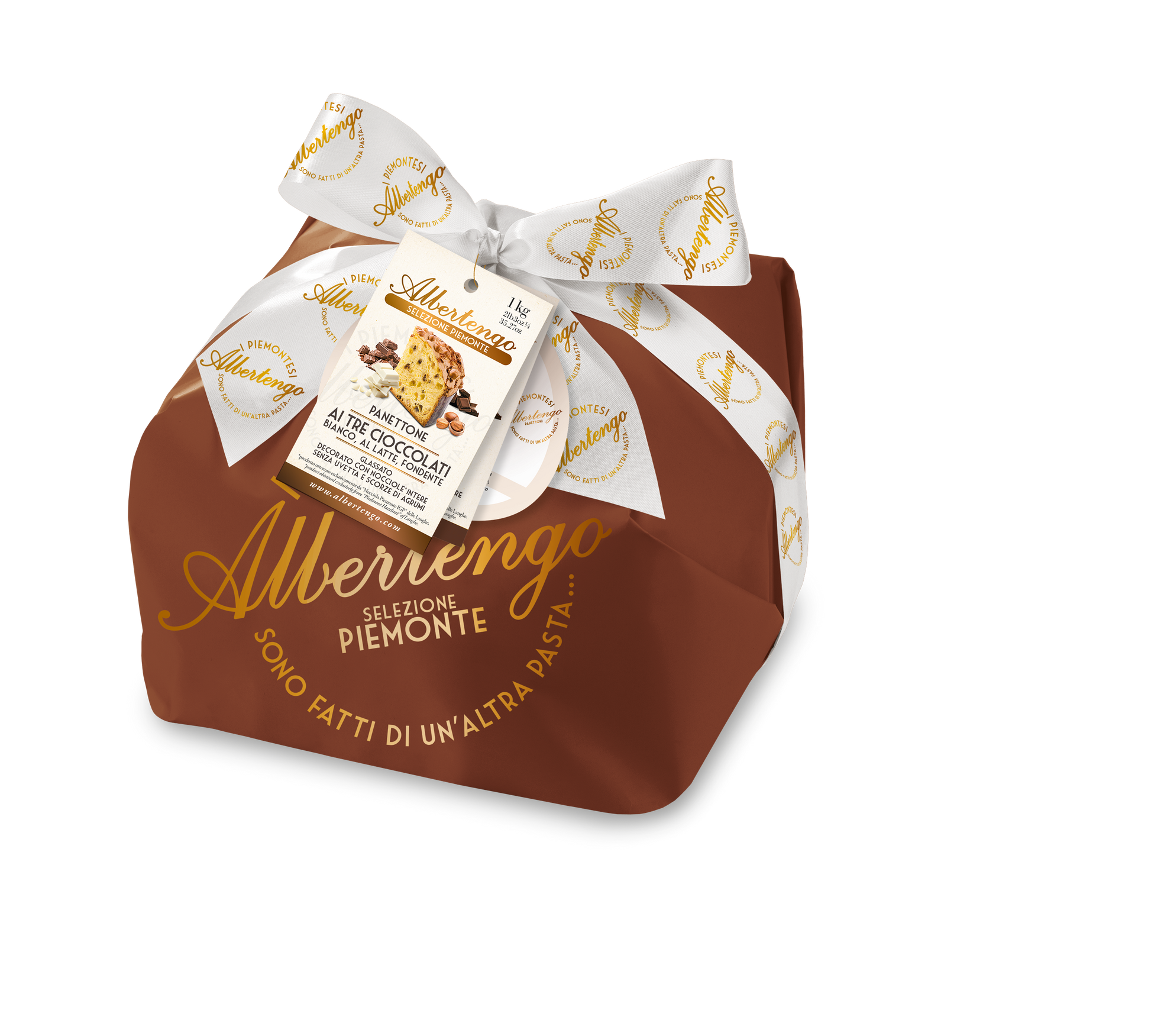 Panettone SEL.PIEMONTE AI TRE CIOCCOLATI (fondant, con leche y blanco)